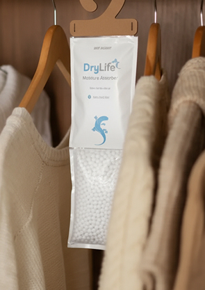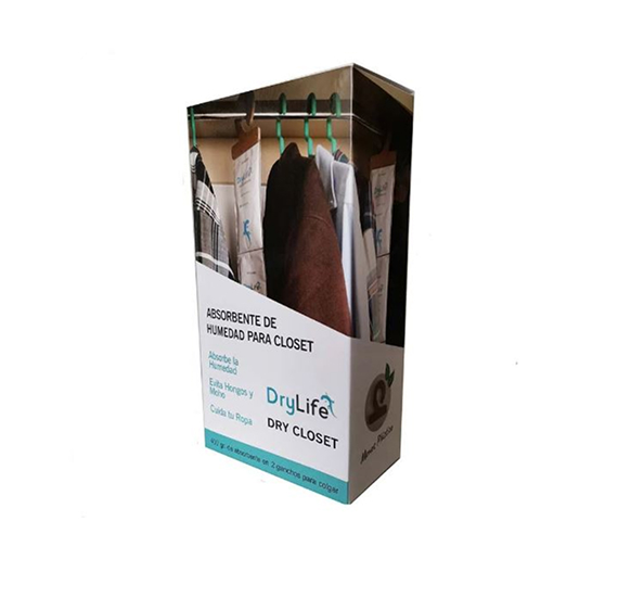 Absorbentes de humedad para clóset. Dos Ganchos para colgar a los extremos, no moja ni gotea y puede tener contacto con la ropa.