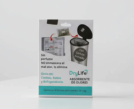 Usando la alta porosidad del carbon activado y neutralizantes de olores, atrapa y disminuye los fuertes olores.